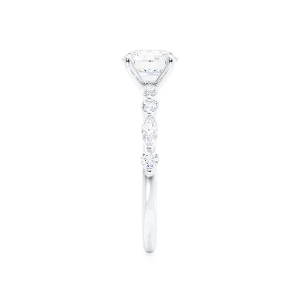 - Setting: 4 prong, diamond round and marquise shoulder set