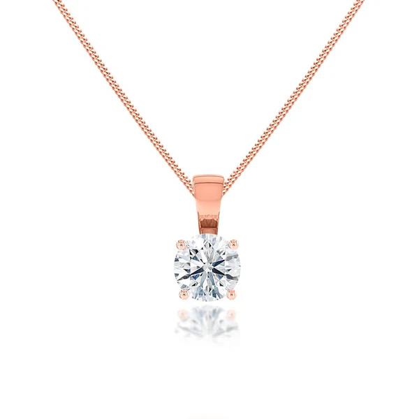 This timeless classic solitaire pendant will add instant glamour to your look. Designed in 18k rose gold, this stunning design features a diamond cut curb chain that holds the centre pendant in a four claw setting. Glistening from every angle, and perfectly showcasing your lab diamond centre stone.