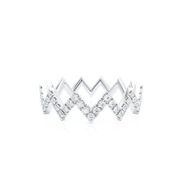 The Kimia statement eternity ring consists of a striking zig-zag shaped band pavé set with stunning round lab grown diamonds. This ring stacks beautifully with a range of designs for maximum impact.