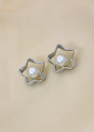 Silver-Tone Star Wire Frame Stud Earrings feature a minimalist star-shaped design with a polished silver-tone finish, offering a modern and stylish look.